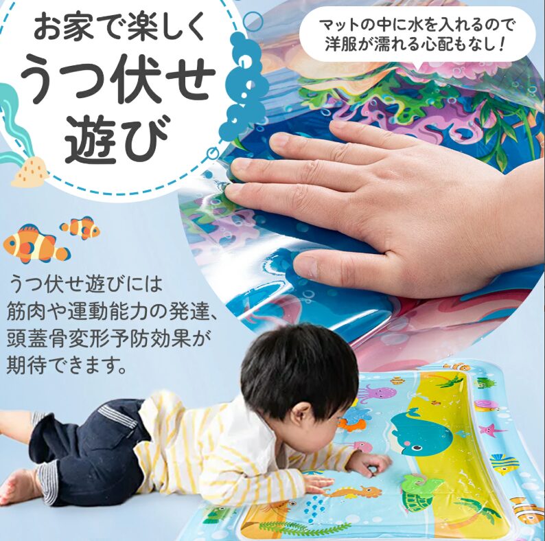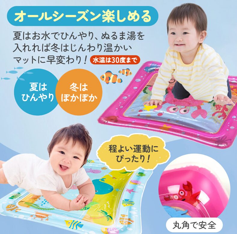 お家の中で手軽に水遊び感覚が楽しめる、ウォータープレイマットです。