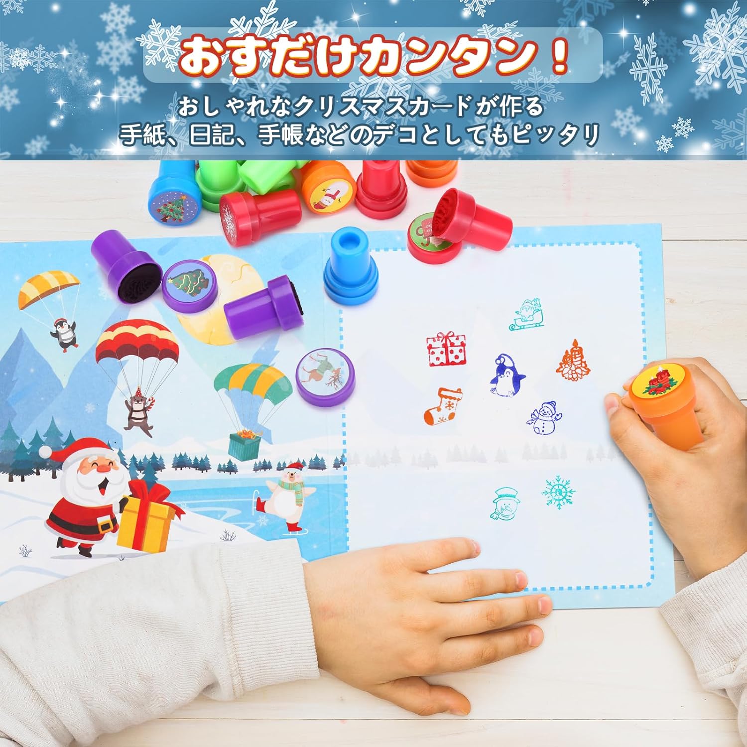 サンタやツリー、雪だるま、トナカイ、雪の結晶など、クリスマス定番のデザインが24種揃います。